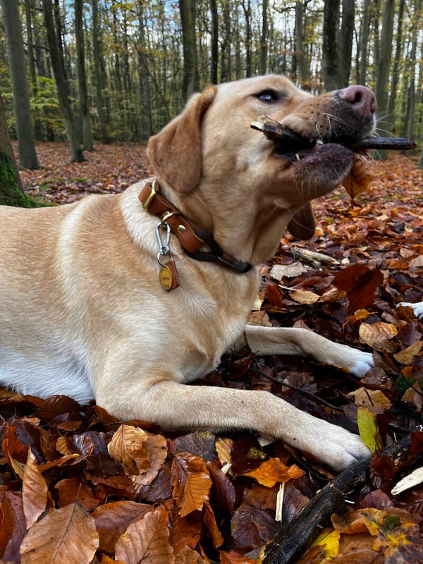 De verstelbare halsband, gemaakt met messing hardware, kan wel tegen een stootje. Halsband gemaakt van premium touw en robuust geolied zacht vetleer.