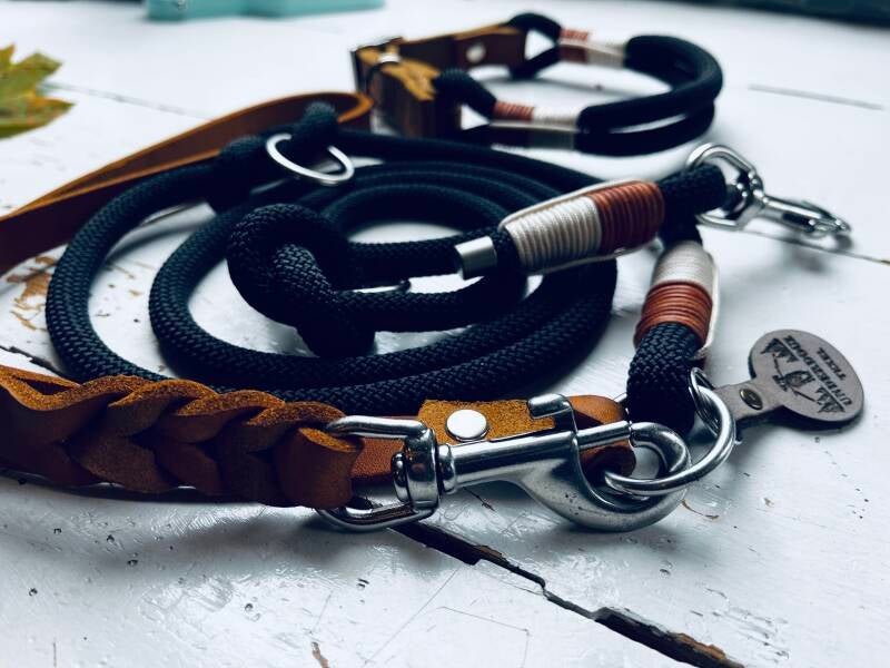 Deze verstelbare hondenlijn is gemaakt van hoogwaardig premium touw en afgewerkt met robuust leer en stevige hardware.