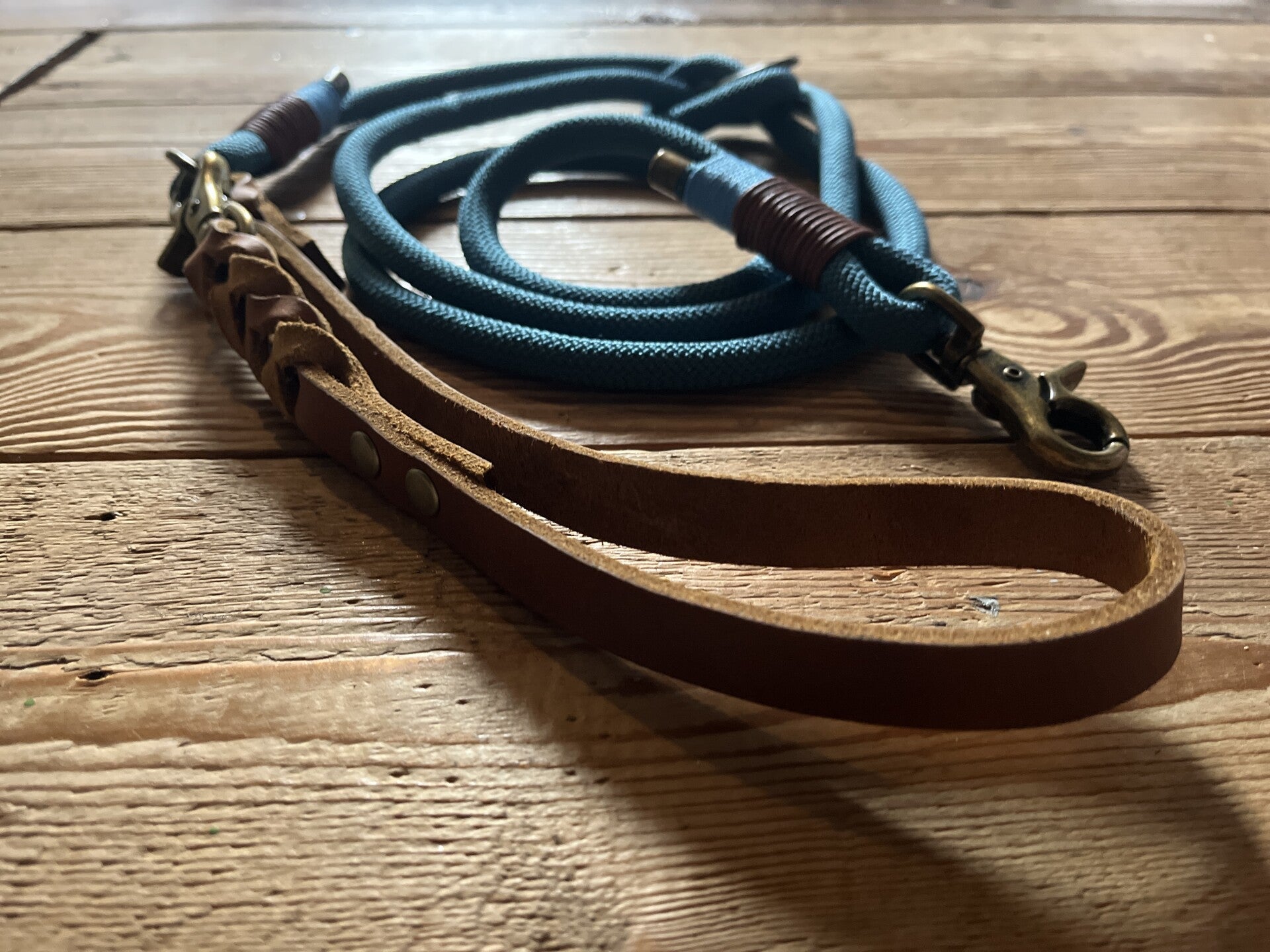 Halsband & riem set BELLA (petrol). Perfecte set voor elke wandeling. De Halsband is ruim verstelbaar en het vettige leer is onderhoudsvriendelijk. Hondenriem 'Bella' is verstelbaar op 2 punten en ook handig schuin over de schouder te dragen. Hardware antiek messing.