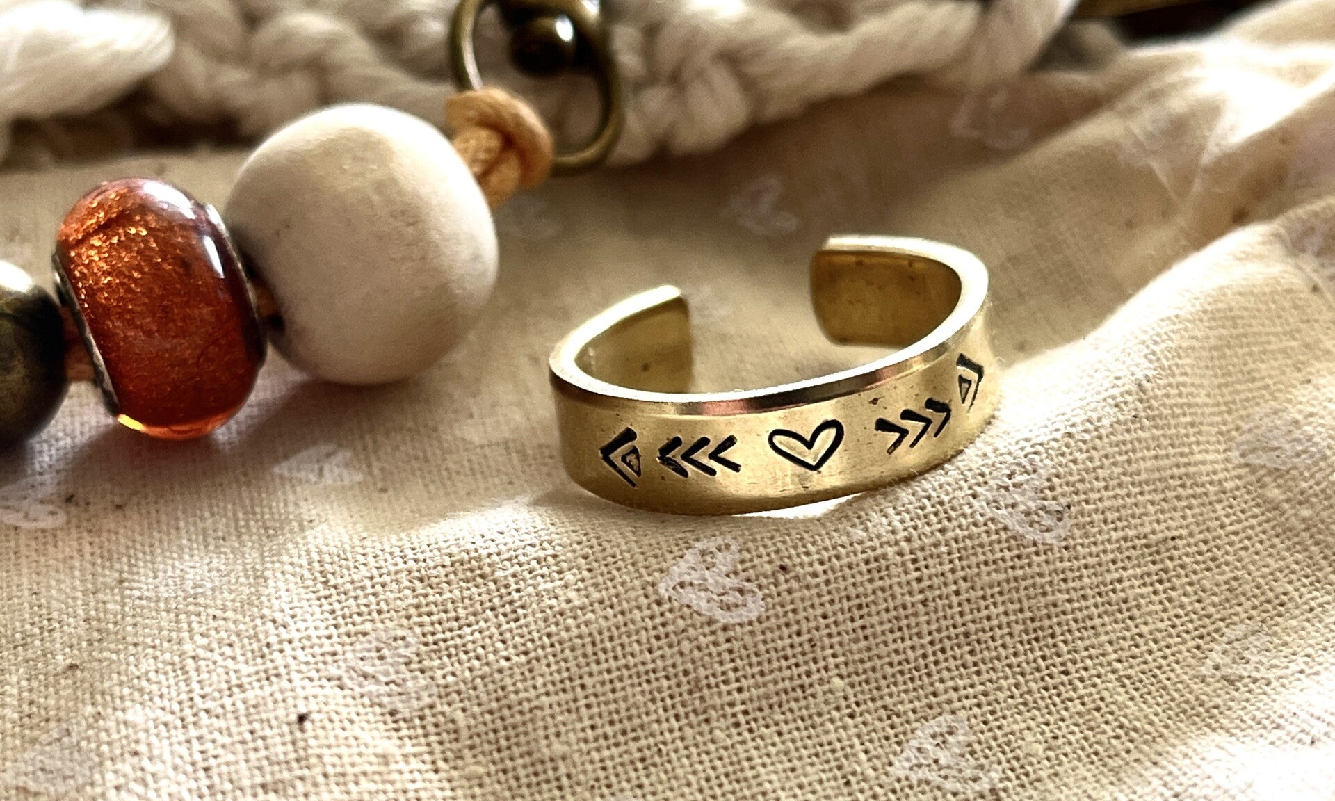 Symbolen letters en cijfers worden met de hand gezet, ze zijn misschien niet perfect recht, maar dit maakt de unieke look van elke ring.