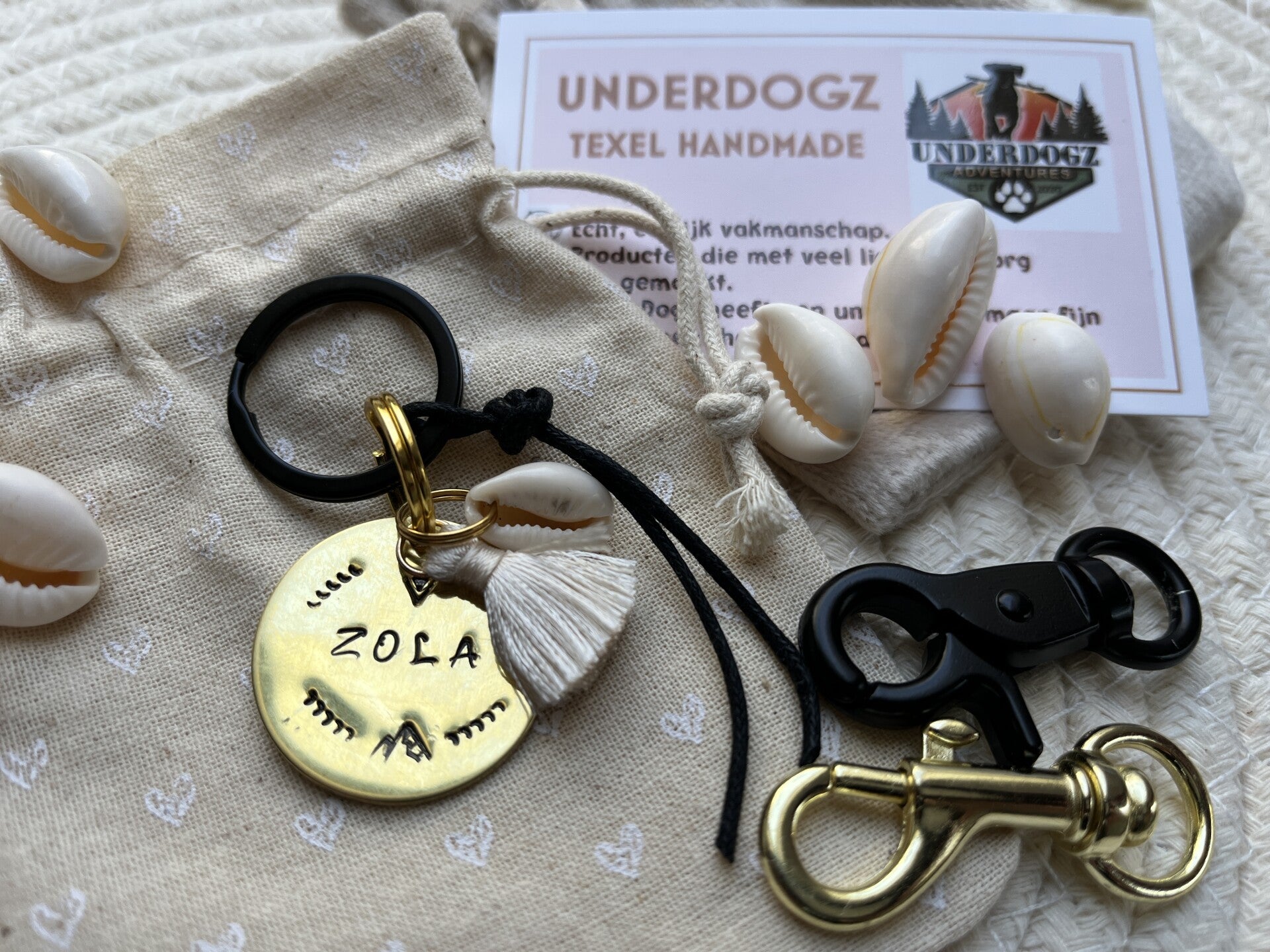 ZOLA hondenpenningpenning van puur messing en persoonlijk met de hand gezet.