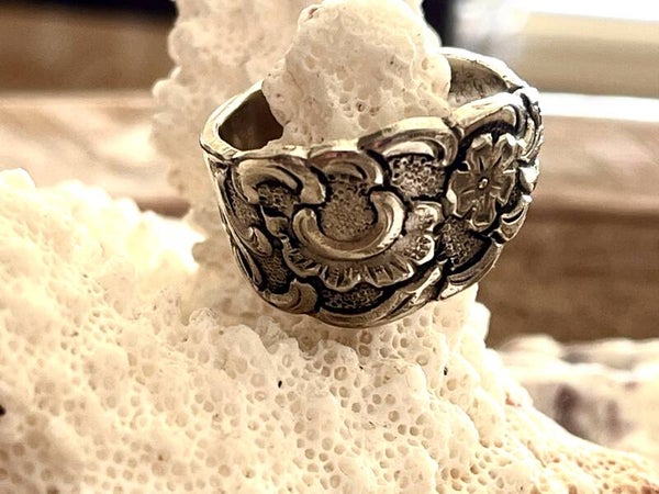 Ring vintage FLOWERS zilver(plated) van antiek theelepeltje.