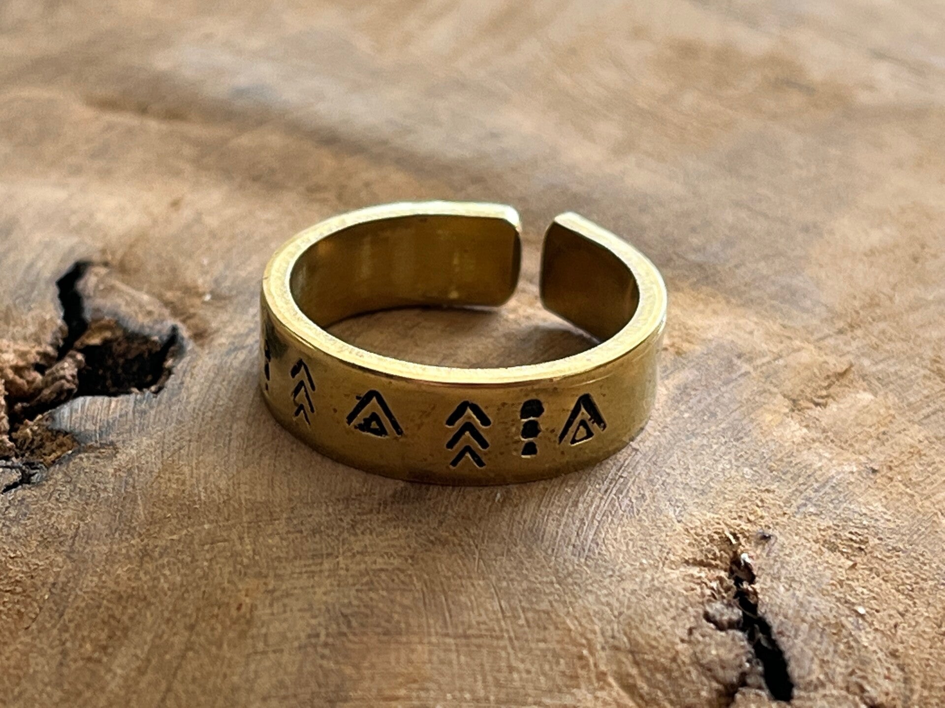 Symbolen letters en cijfers worden met de hand gezet, ze zijn misschien niet perfect recht, maar dit maakt de unieke look van elke ring.