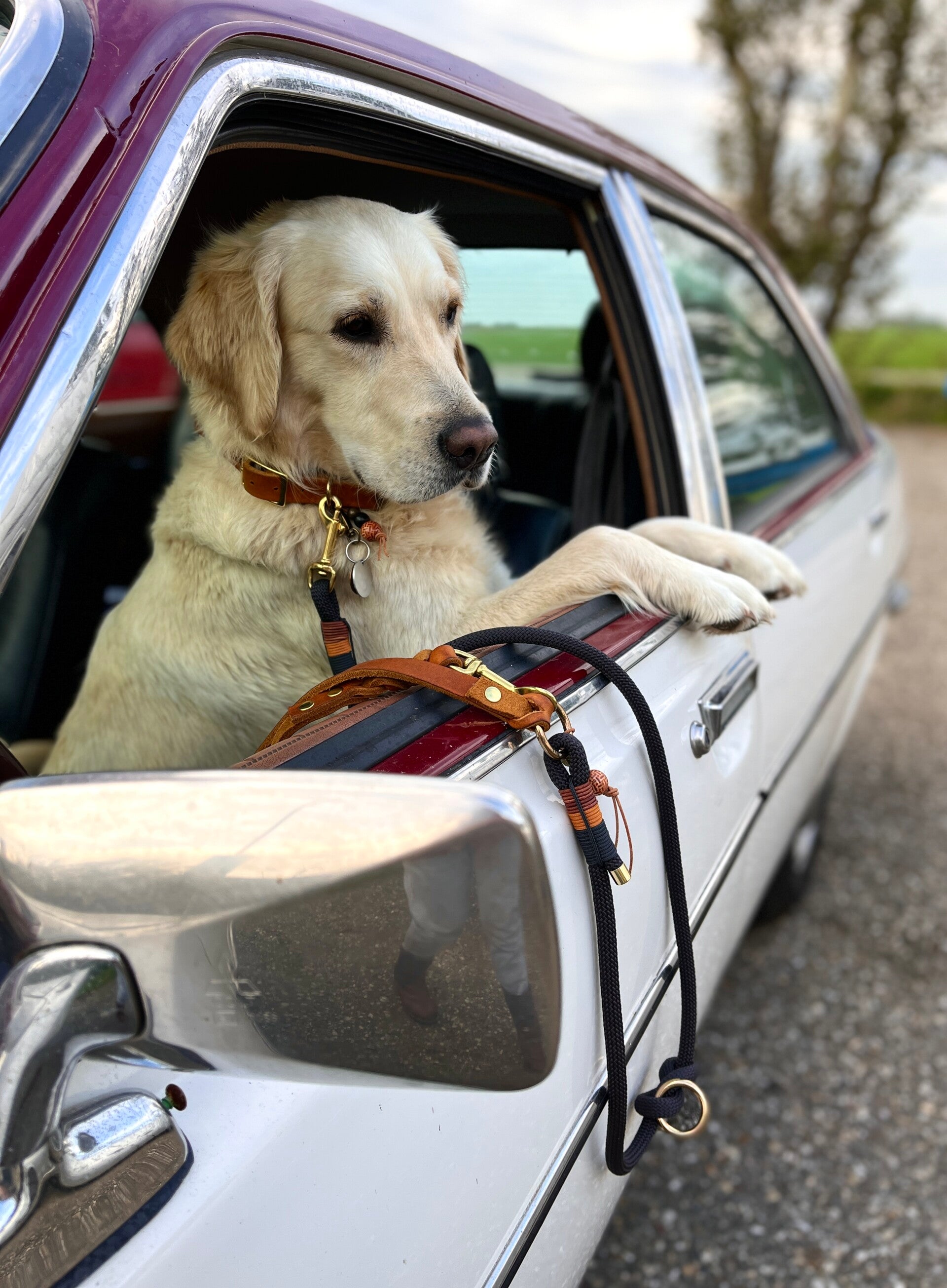 Halsband & Lijn set 'Bark' | Verstelbaar van leer en touw